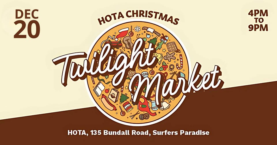Step into a sparkling festive wonderland at the HOTA Twilight Christmas Market — one of the most magical Gold Coast Christmas events — happening Saturday, 20 December, 4PM–9PM! Discover a night under the stars filled with artisan gifts, gourmet food, live entertainment, family activities, and a special visit from Santa himself 🎅💫